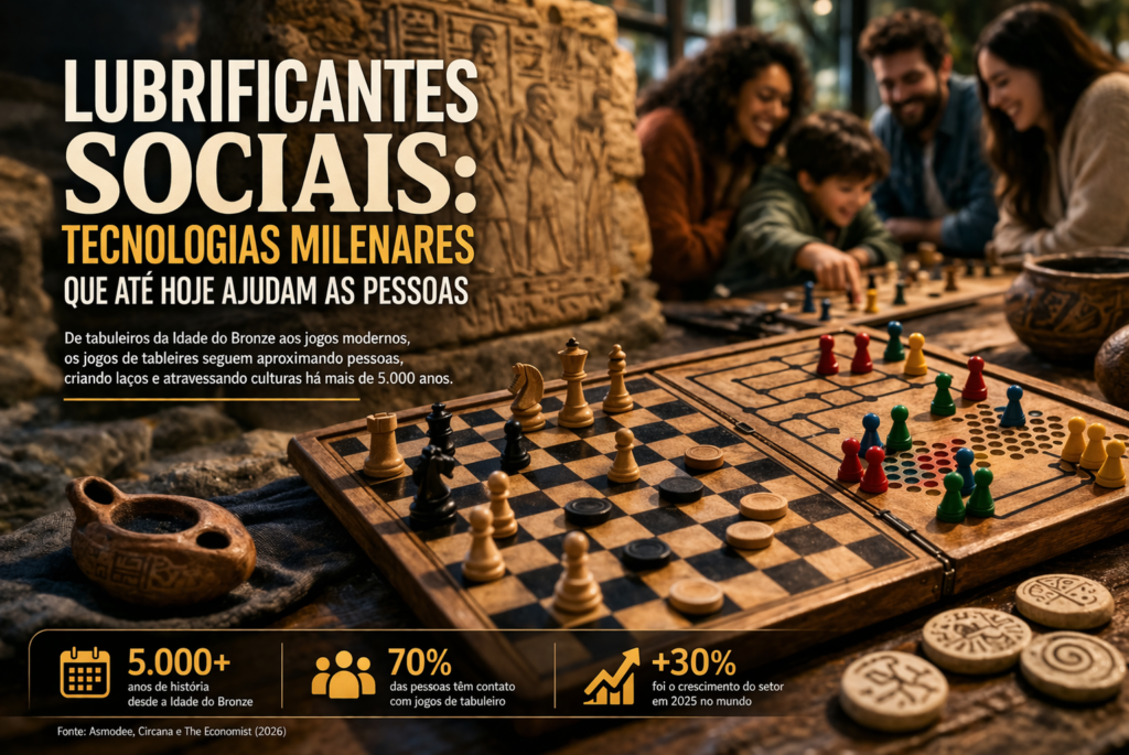 Em um mundo cada vez mais conectado por telas, tecnologias com mais de cinco mil anos seguem cumprindo um papel essencial: aproximar pessoas. Os jogos de tabuleiro, muitas vezes vistos apenas como entretenimento, vêm sendo redescobertos como verdadeiros “lubrificantes sociais”, capazes de facilitar interações, fortalecer vínculos e até superar barreiras culturais.